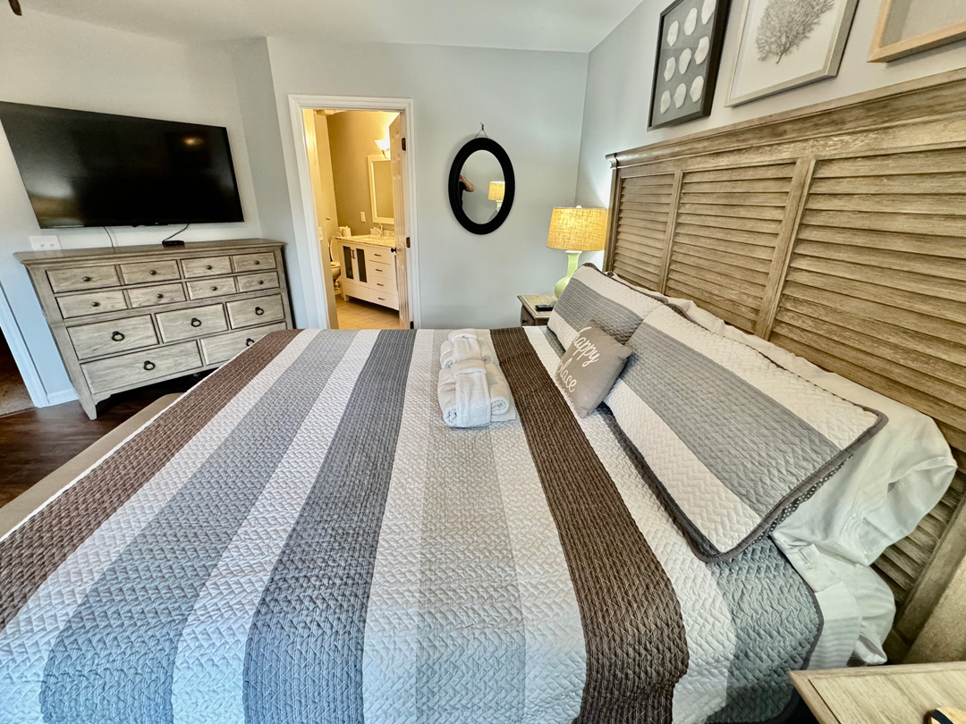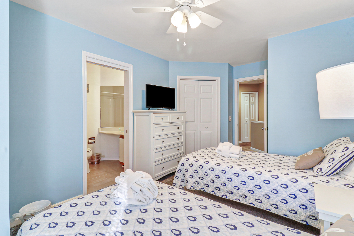 This unit was just placed on the rental market and has been fully remodeled. The beautiful 2 story villa has plenty of space to relax and unwind. The downstairs King bedroom has a private full bath. Upstairs has a private King bedroom with its own full bath. The 3rd bedroom has 2 Twin bunks and also its own private full bath. All bedrooms have HD flatscreen TVs for your enjoyment along with WiFi are all included.